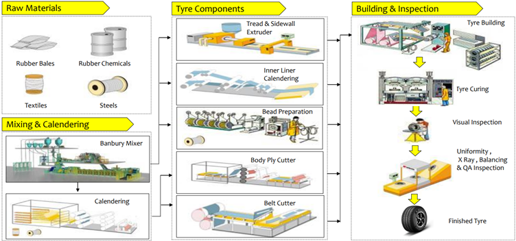 Fig: Tyre Manufacturing Process (Source: Presentation of JK Tyre, Chennai)