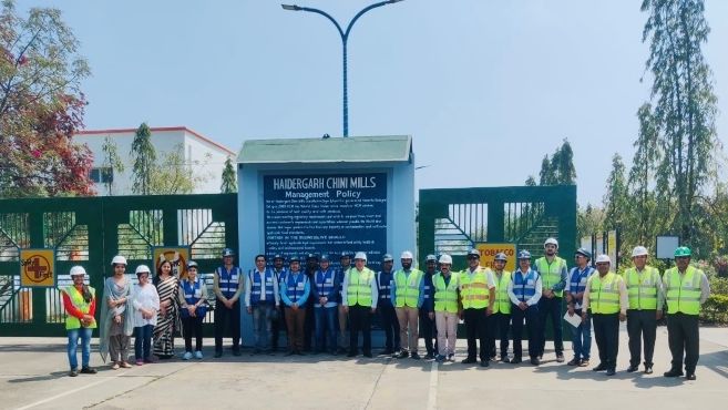 A study trip to Balarampur Chini Mills Limited, Haidergarh in Uttar Pradesh, located on the connecting road between Haidergarh town and Pokhra village was organised under the Aspire Programme on 22nd March 2024. The company has a crushing capacity of 5000 tonnes of cane per day along with a 20.25 MW cogeneration plant fuelled by bagasse. In addition to a 3 MW turbine generator to export power to the grid, the plant operates a boiler with a nominal capacity of 120 TPH incorporating a traveling grate with electric drive which is particularly developed for burning bagasse. Furthermore, the plant also incorporates an extraction cum condensing turbo generator set with a nominal capacity of 20.25 MW and steam inlet parameters of 84 kg/cm2 and 510⁰C. In overall, the Balaram Chini Mills Limited, Haidergarh showcases a high level of decarbonisation practices. The study trip enabled in fostering a deeper understanding of the IEED technologies adopted by the company in sugar sector in India.
